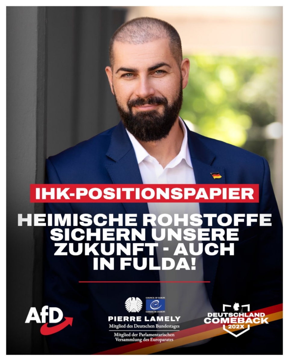 Der Fuldaer Bundestagsabgeordnete Pierre Lamely (AfD) begrüßt das Positionspapier der IHK Fulda zur Stärkung der…