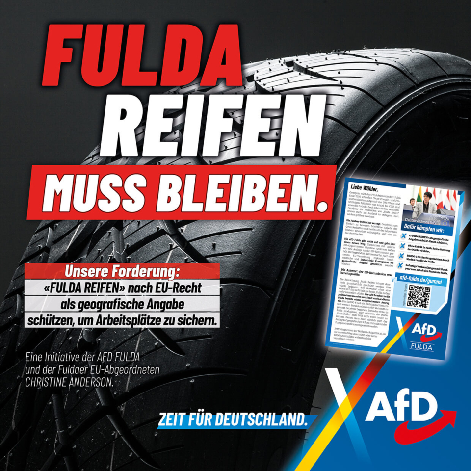 Parallel dazu muss Goodyear an den Verhandlungstisch zurückgeholt werden, um sich zu entscheiden: Entweder der Konzern produziert weiterhin in Fulda, oder er riskiert, die Marke „Fulda Reifen“ ab Ende 2025 nicht mehr nutzen zu können. Denn genau dann können die politischen Gremien in Stadt und Landkreis Fulda erstmals einen Antrag auf geografischen Schutz der Bezeichnung „FULDA“ bzw. „Fulda Reifen“ bei der Europäischen Union einreichen.